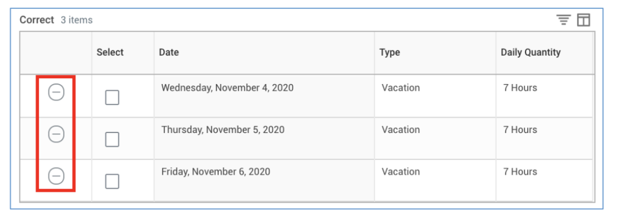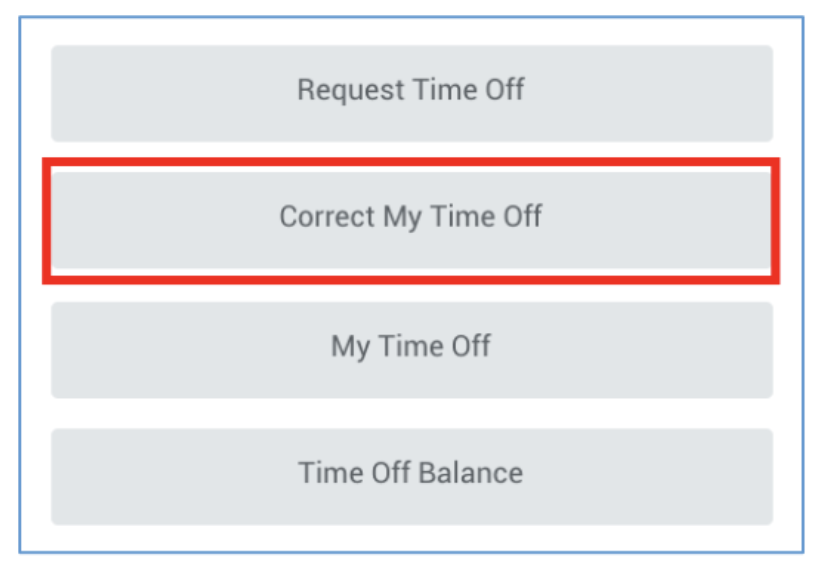 Navigate to the existing time off request that you want to delete or correct. Click on the request